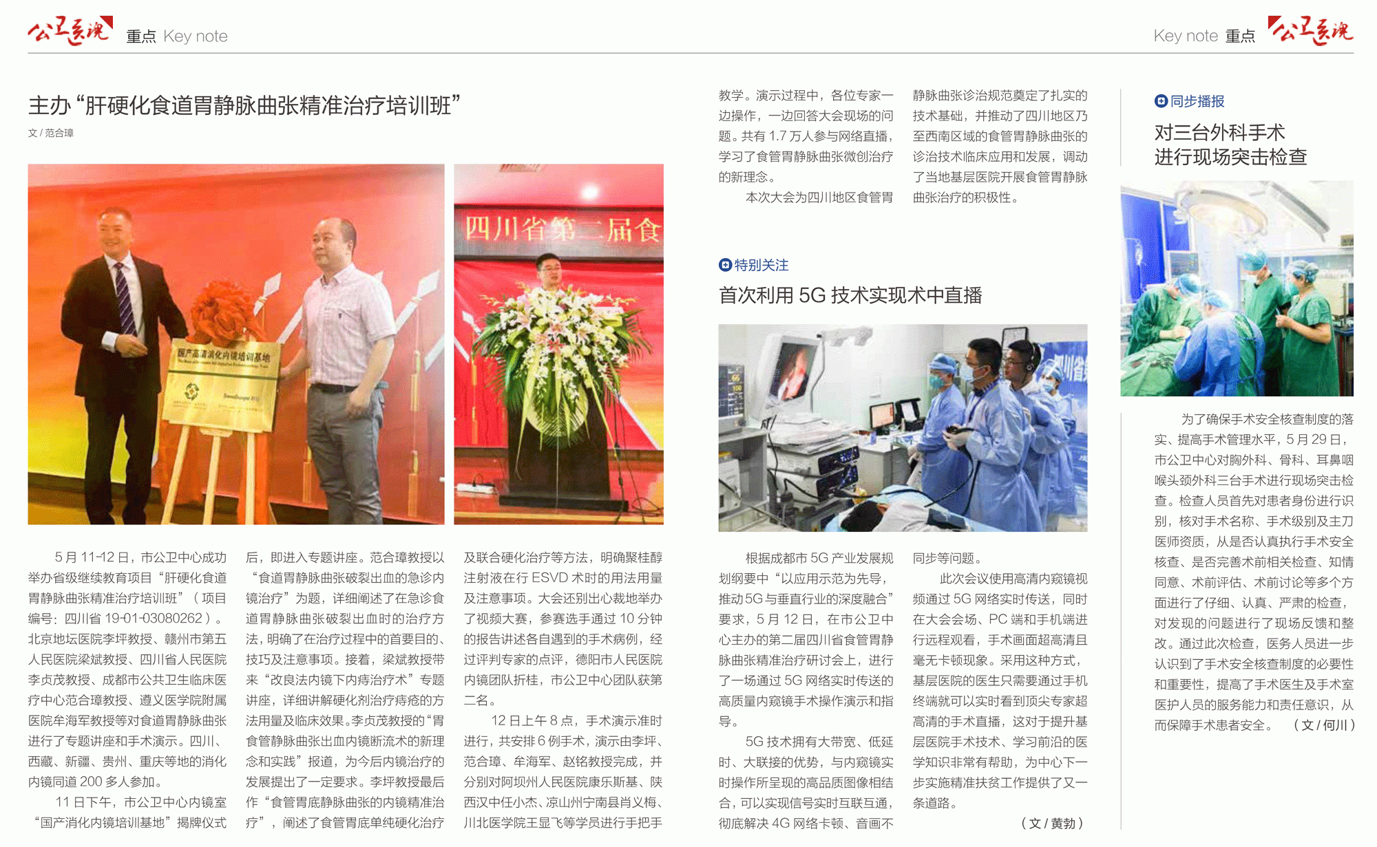 3月18日,由市公卫中心承办的“四川省第一届食管胃静脉曲张精准治疗论坛”在航天院区学术厅隆重召开。来自云南、贵州、重庆、广西、安徽、吉林及四川的专家代表200余人齐聚市公卫中心,探讨肝硬化合并食道胃静脉曲张内镜精准治疗的先进技术。