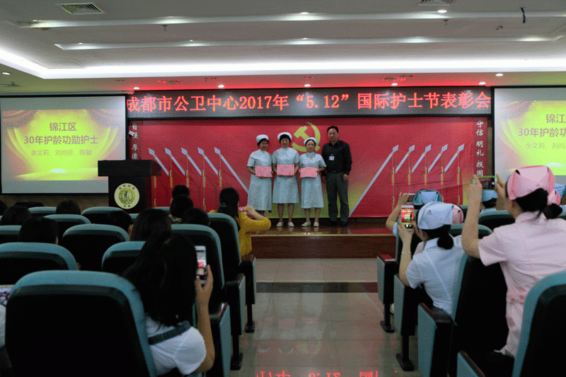 2017年5月12日,市公卫中心隆重召开“5.12”国际护士节表彰大会,院领导、相关职能科室负责人和全院100多名护士代表欢聚一堂,共庆“5.12”国际护士节。