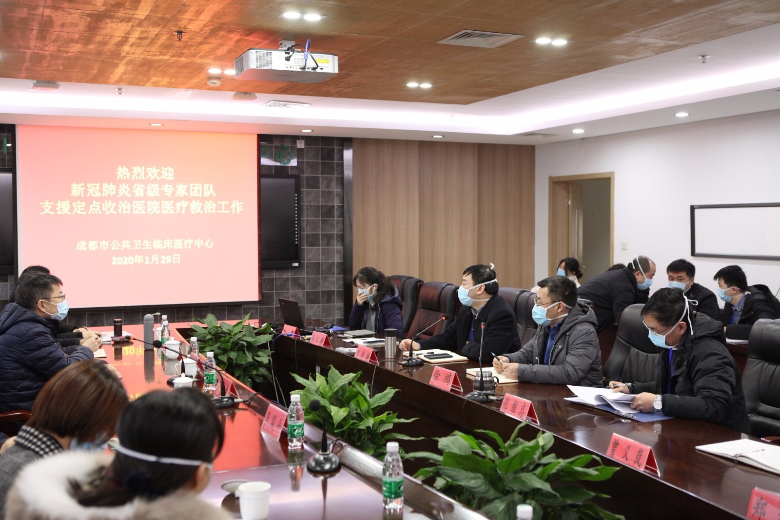 1月29日上午,四川大学华西医院梁宗安教授带领新冠肺炎省级专家团队一行,到市公卫中心对新冠肺炎患者的医疗救治工作进行指导。市公卫中心党委书记徐鸿、院长刘德顺、专职党委副书记张维忠等班子成员、市级专家团队参加会议。