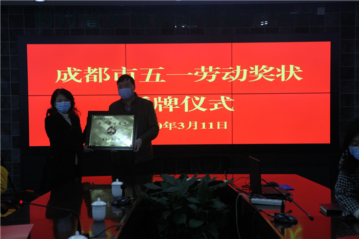 3月11日上午,“成都市五一劳动奖状”授牌仪式在成都市公卫中心举行,成都市总工会党组成员、经审会主任刘锦霞等一行4人到成都市公卫中心授牌。成都市公卫中心党政班子成员、行政职能科室负责人参加授牌仪式。