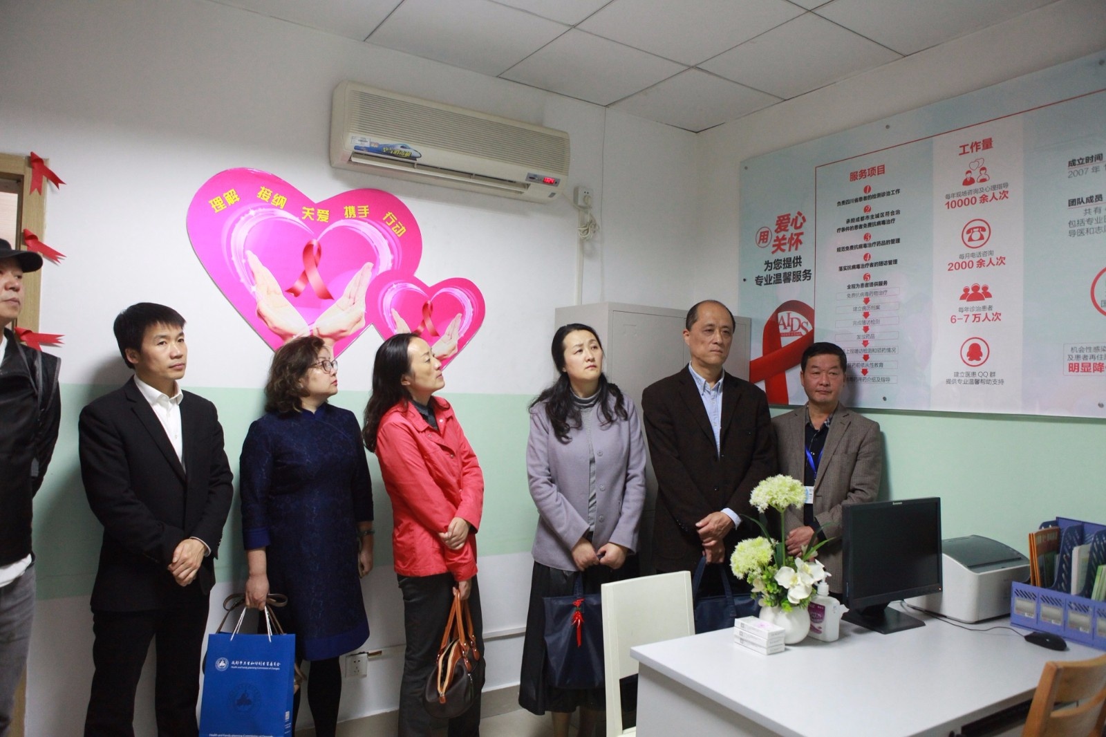 市公卫中心党委书记程健向视察组详细介绍了“中心”基本情况。随后,视察组在门诊艾滋病关爱中心实地查看艾滋病患者随访管理、督导服药、相关临床检测、关怀和咨询、转诊转介和档案管理等工作;在艾滋病病区了解艾滋病患者的收治情况、母婴阻断工作及医务人员发生艾滋病职业暴露后的处置、政策补贴、有无感染发生等情况。