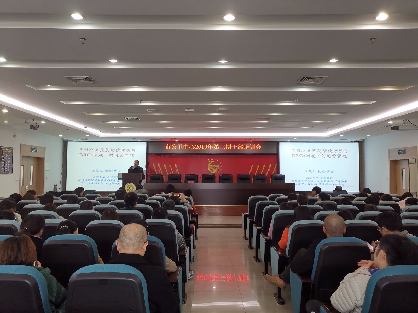 2019年12月10日下午,市公卫中心邀请台湾知名医院管理专家、美国杜兰大学公共卫生博士、医务管理硕士、北京大学讲座教授王俊文博士到我院开展了“三级公立医院的绩效考核与DRGs制度下的运营管理”的学术讲座。近百人聆听了讲座。