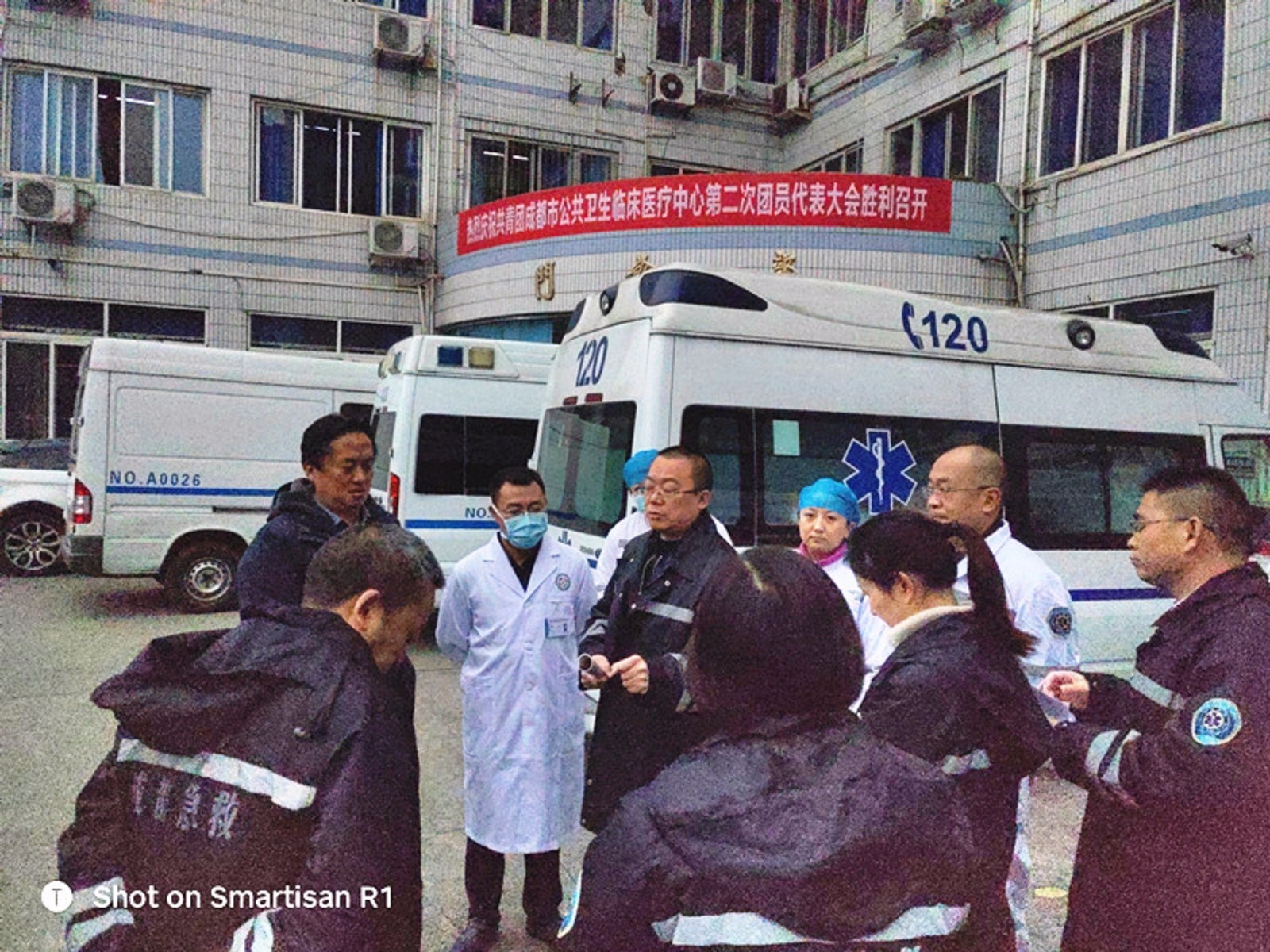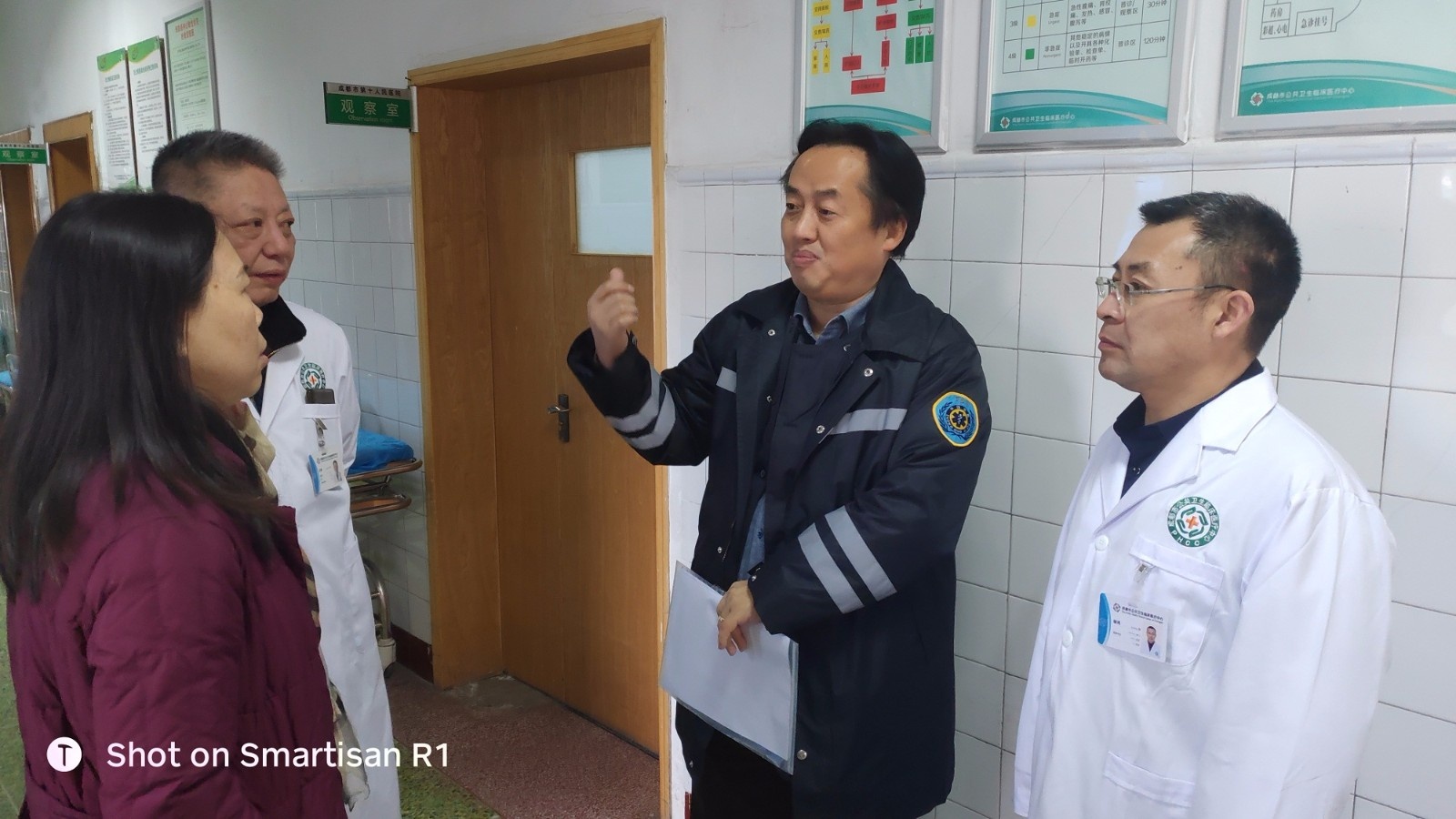 2019年12月3日,由成都市急救指挥中心副主任侯宇飞带队,成都市院前急救6位专家组成的检查团莅临市公卫中心,对120网络医院院前急救工作进行评估复审。市公卫中心党委书记徐鸿带领相关科室迎检。