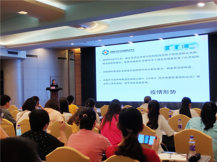 为进一步落实常态化疫情防控工作有关要求,规范医疗机构诊疗流程,减少医院感染的发生,提高全市临床医务人员对新冠肺炎的识别和处置能力以及诊治水平,成都市公共卫生临床医疗中心于2020年8月12日举办了“2020年新冠肺炎疫情防控培训班”,来自全市各单位代表164人参加了本次培训。